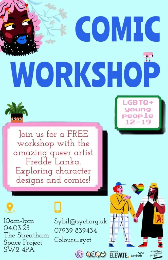We are inviting young people who are LGBTQ+ to a Comic workshop with Fredde Lanka. Take a moment to have a look at some of his work, it’s very cool! https://www.freddelanka.com/About